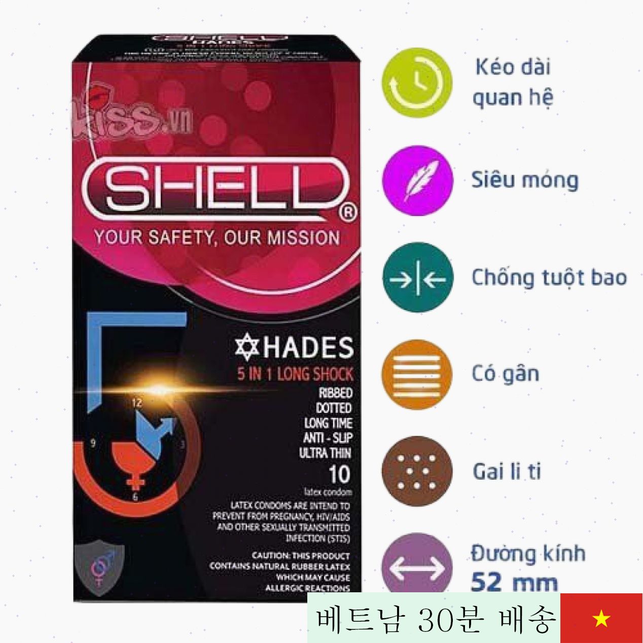 SHELL Perfomaxxx 6-in-1 딸기향 콘돔은 한국에서 제작된 프리미엄 제품으로, 다기능을 원하는 분들께 최적의 선택입니다. 천연 라텍스 소재로 만들어져 안전하고 쾌적한 사용감을 선사하며, 다양한 혁신 기능을 한 번에 경험할 수 있습니다.